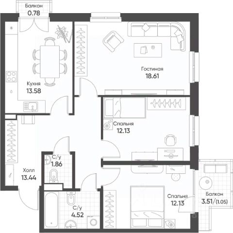 Продается 3-комнатная квартира 13 площадью 77,94 кв.м на 3 этаже проекта "Дом на Исхаки" от "Ак Барс Дом". Купить квартиру можно в ипотеку со ставкой от 4,5%. "Дом на Исхаки" новый жилой комплекс бизнес-класса в историческом центре Казани. Для тех, кто хочет жить в сердце мегаполиса, и при этом сохранить атмосферу приватности. В доме всего 56 квартир. ЖК расположен недалеко от Кремля в окружении необходимой инфраструктуры: в пешей доступности бизнес-центры, Академический лицей им. Лобачевского и другие школы, федеральные университеты, детские сады, Большой драматический театр, ЦУМ, ТРК "Кольцо", спортивные и медицинские центры. Проект "Дом на Исхаки" это премиальный комфорт. Уютный двор с детской площадкой и возможностями для спокойного отдыха, подземный паркинг с современной системой охраны и удобным заездом по считыванию номеров. Эффектная входная группа впечатляет: художественная подсветка фасадов, панорамное остекление, лаунж-зоны с мягкими диванами, система антиобледенения при входе. Вместительная колясочная и гостевой санузел в холле. В проекте высокие потолки до 3 м и до 4,4 м на мансардном этаже, просторные видовые террасы. Увеличенные окна и стекла с нанонапылением повышают шумоизоляцию, делают жилое пространство светлее и теплее, помогают сократить расходы на отопление. Просторная 3-комнатная квартира с продуманной планировкой. Отдельная кухня площадью около 15 кв. м, где вся семья может собираться за большим столом, три комнаты для личного пространства всех домочадцев. В квартире 2 санузла, функциональная прихожая с нишами под гардеробную. Из каждой из двух комнат есть собственный выход на балкон. Здесь по утрам за чашечкой чая или кофе вы сможете наслаждаться жизнью в центральной части Казани. Видеонаблюдение по периметру дома, в лифтах, в подъезде и на парковке. Система IP-домофонии с функцией Face-ID. В квартиры установлены стильные вызывные панели со встроенной камерой. Через приложение вы можете наблюдать, что происходит перед дверью квартиры и удаленно открывать дверь в подъезде своим гостям. Мы сделали все, чтобы придать Вашей мечте форму дома. Дом там, где мы.