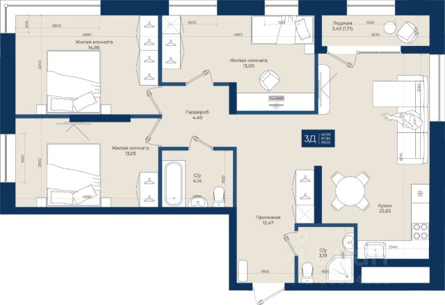• ✅ Минимальная площадь: 54,9 м²