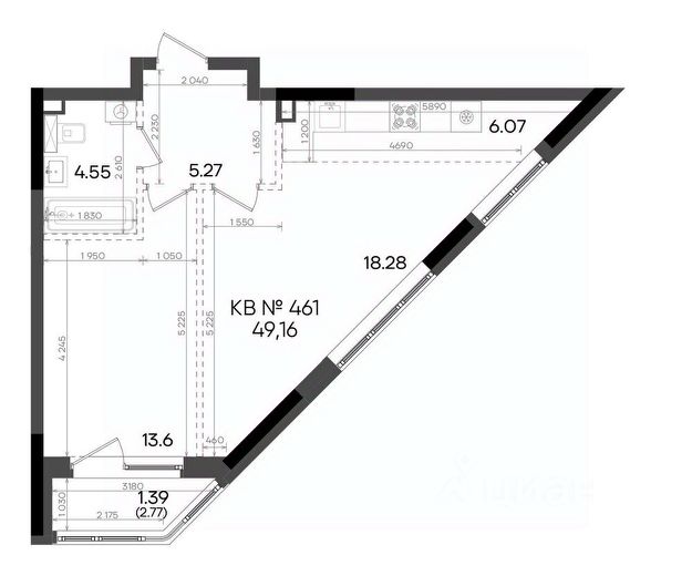 • Качественные материалы: керамогранит (ванна, кухня, прихожая), фурнитура Blum