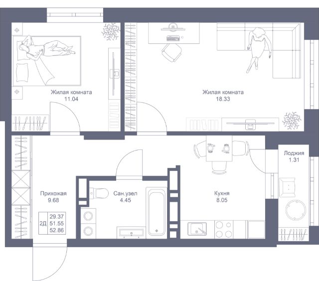Продаётся 2-комнатная квартира в строящемся доме (Дом 14), срок сдачи: I-кв. 2026, общей площадью 55.84 кв.м., на 16 этаже. Расположение, транспортная доступность