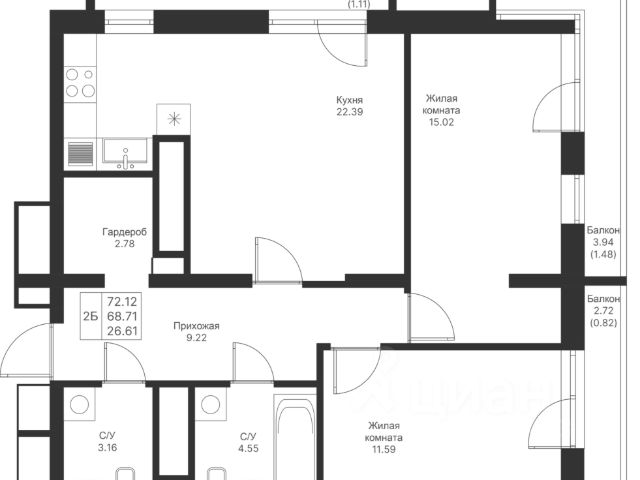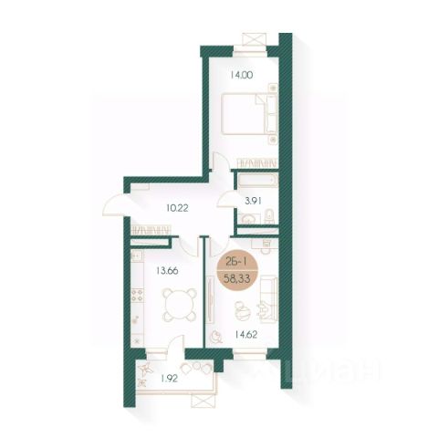 Продаётся 2-комнатная квартира в строящемся доме (Дом 14), срок сдачи: I-кв. 2026, общей площадью 58.69 кв.м., на 16 этаже. Расположение, транспортная доступность