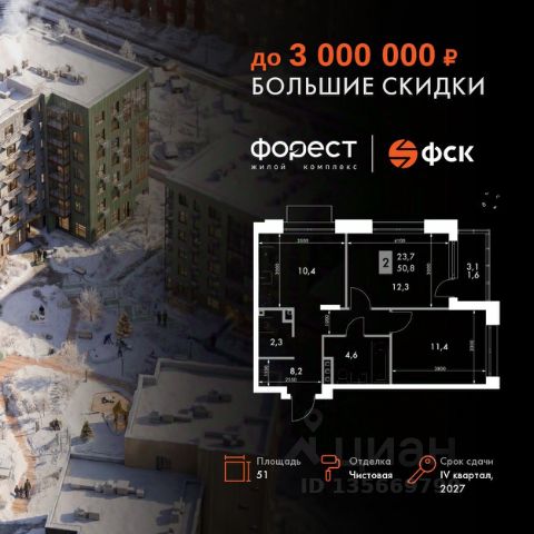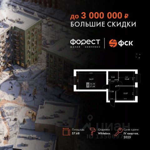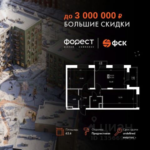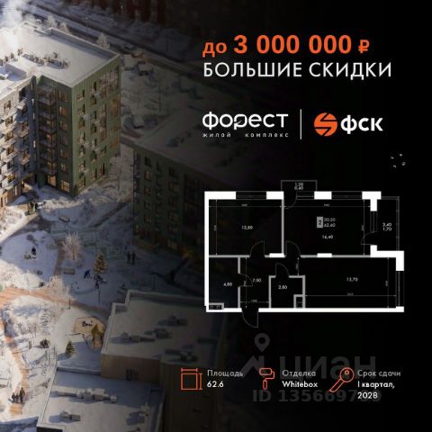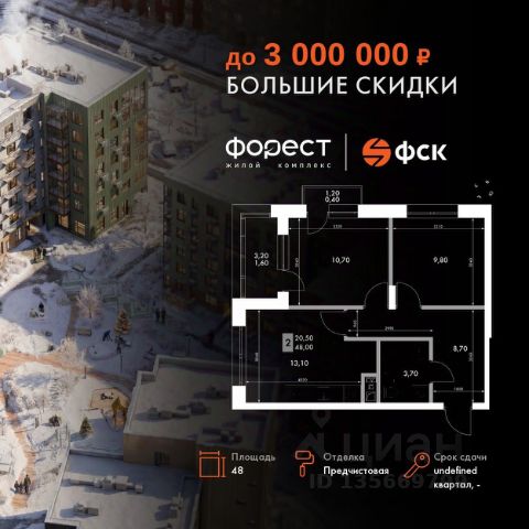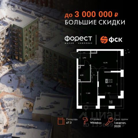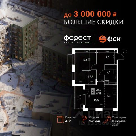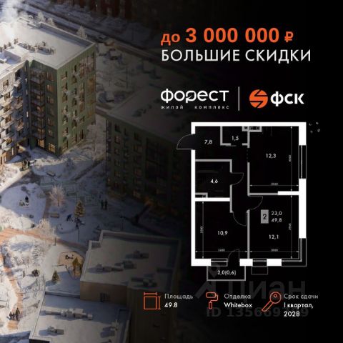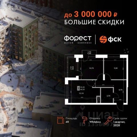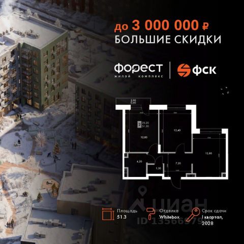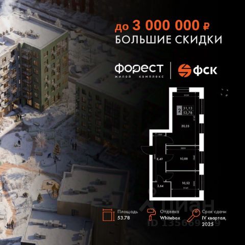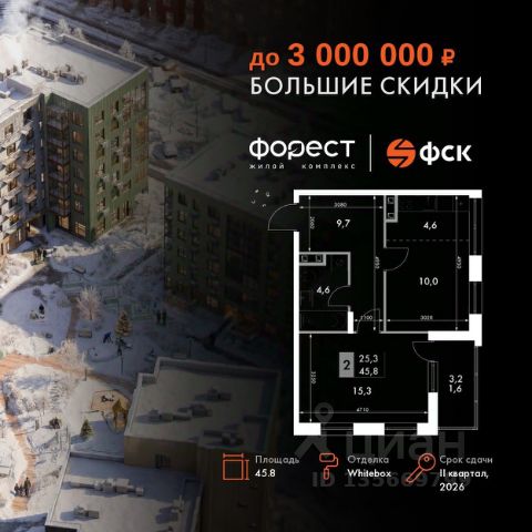 Прямая продажа от застройщика! Корпус 1.1 сдан! Жилой Комплекс комфорт-класса. Продаётся 2-к квартира номер 10 общей площадью 45.8 кв.м. на 2-м этаже 7 этажного здания. Отделка Whitebox. Цена с учётом скидки. Особенности квартиры: Квартира с предчистовой отделкой (White box). Вам не придется заниматься черновыми и трудоёмкими работы, а чистовую отделку и дизайн - сделайте на свой вкус. Информация о комплексе: "Форест" - жилой комплекс комфорт-класса, созданный для тех, кто ищет гармонию с природой, не отказываясь от городского ритма. Расположенный в окружении леса и реки, он воплощает мечту о загородной жизни со всеми удобствами города. Здесь можно проживать самые тёплые моменты с близкими, дышать свежим хвойным воздухом, встречать утро на собственной террасе или проводить вечера с друзьями под открытым небом. Благоустроенная территория, прогулочные дорожки и зоны отдыха создают атмосферу уюта и гармонии. Поблизости - лес и Волга, куда можно выбраться на прогулку в любое время, не дожидаясь выходных. Благодаря вечнозелёным растениям и продуманному озеленению, дворы остаются зелёными круглый год. Транспортная доступность: - 4 мин. пушком до автобусной остановки - 5 мин. на машине до школы Внутренняя инфраструктура: Продуманное пространство для жизни, отдыха и развития. На территории комплекса работает собственный детский сад - современное и безопасное пространство, где дети всегда рядом с родителями. Во дворе установлены игровые комплексы для активных прогулок и развития малышей на свежем воздухе. Жителям доступны кафе и магазины, площадки для прогулок с питомцами, зоны для пикников и барбекю. Для любителей активного образа жизни предусмотрены велодорожки, воркаут-зоны и тропы для хайкинга, а в шаговой доступности находятся планетарий и глэмпинг. Просторный двор без машин и закрытая территория с системой контроля доступа обеспечивают высокий уровень безопасности и приватности. Здесь можно по-настоящему расслабиться и чувствовать себя дома - в окружении природы, комфорта и заботы о каждом дне.