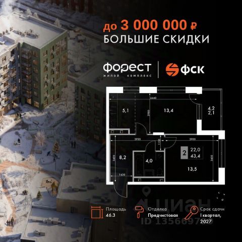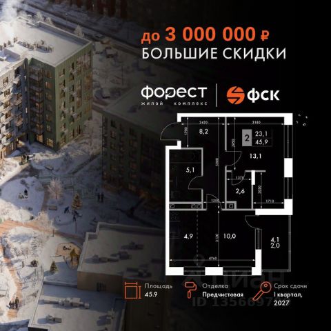 Прямая продажа от застройщика! Корпус 1.1 сдан! Жилой Комплекс комфорт-класса. Продаётся 2-к квартира номер 21 общей площадью 47.7 кв.м. на 4-м этаже 6 этажного здания. Предчистовая отделка. Цена с учётом скидки. Особенности квартиры: - Угловая планировка - больше пространства для ваших идей. - Балкон - открытое пространство для отдыха. - Лоджия - уютное место для отдыха и тишины. Квартира с предчистовой отделкой (White box). Вам не придется заниматься черновыми и трудоёмкими работы, а чистовую отделку и дизайн - сделайте на свой вкус. Информация о комплексе: "Форест" - жилой комплекс комфорт-класса, созданный для тех, кто ищет гармонию с природой, не отказываясь от городского ритма. Расположенный в окружении леса и реки, он воплощает мечту о загородной жизни со всеми удобствами города. Здесь можно проживать самые тёплые моменты с близкими, дышать свежим хвойным воздухом, встречать утро на собственной террасе или проводить вечера с друзьями под открытым небом. Благоустроенная территория, прогулочные дорожки и зоны отдыха создают атмосферу уюта и гармонии. Поблизости - лес и Волга, куда можно выбраться на прогулку в любое время, не дожидаясь выходных. Благодаря вечнозелёным растениям и продуманному озеленению, дворы остаются зелёными круглый год. Транспортная доступность: - 4 мин. пушком до автобусной остановки - 5 мин. на машине до школы Внутренняя инфраструктура: Продуманное пространство для жизни, отдыха и развития. На территории комплекса работает собственный детский сад - современное и безопасное пространство, где дети всегда рядом с родителями. Во дворе установлены игровые комплексы для активных прогулок и развития малышей на свежем воздухе. Жителям доступны кафе и магазины, площадки для прогулок с питомцами, зоны для пикников и барбекю. Для любителей активного образа жизни предусмотрены велодорожки, воркаут-зоны и тропы для хайкинга, а в шаговой доступности находятся планетарий и глэмпинг. Просторный двор без машин и закрытая территория с системой контроля доступа обеспечивают высокий уровень безопасности и приватности. Здесь можно по-настоящему расслабиться и чувствовать себя дома - в окружении природы, комфорта и заботы о каждом дне.