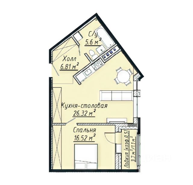 • ✅ Минимальная площадь: 57,1 м²