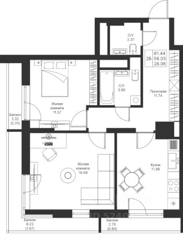 • ✓ В базе Циан 209 2-комнатных квартир на 5 этаже рядом с метро Проспект Победы