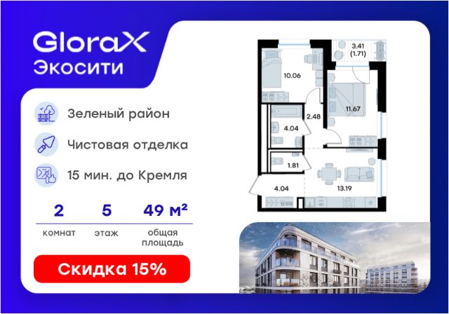 Продается 2-комн. квартира на 5-м этаже в строящемся проекте премиум-класса GloraX Premium Экосити. Общая площадь лота составляет 52,19 кв. м, из которых 21,75 кв. м отведено под жилую и 15,51 кв. м под кухонную зону. Номер квартиры - 26 GloraX Premium Экосити это роскошь, вдохновленная природой. Преимущества, которые изменят вашу жизнь: • Собственная премиальная инфраструктура: Всё для комфорта и досуга, не выходя за территорию комплекса • Безопасность 24/7: Закрытая территория, видеонаблюдение, система "Умный дом" • Безбарьерная среда: Забота о каждом жителе, независимо от возраста и физических возможностей. • Изысканные дизайнерские холлы: Эстетика и комфорт с первых шагов в вашем доме. • Удобные колясочные в каждой секции: Больше пространства в вашей резиденции. • Квартиры в черновой отделке: Индивидуальные пространства для комфортной жизни. • Вдохновляющее благоустройство: Вдохнолвленные хвойным окружением: пешеходные и спортивные маршруты, детские площадки для разных возрастов, площадки для отдыха взрослых и зеленые кабинеты, озеро с плейхабом, теннисная площадка, площадка для мини-гольфа и многое другое всё для активной и насыщенной жизни. • Забота о будущем: Современные детский сад и школа с центром допольнительного образования рядом с кварталом. GloraX Premium Экосити это масштабный проект премиум-класса, созданный для тех, кто ценит комфорт, безопасность и качество жизни. Расположенный в Аракчино Кировского района, он гармонично сочетает в себе близость к природе и развитую инфраструктуру. Здесь каждый элемент создан для вашего удобства: от функциональных планировок до благоустроенной территории. GloraX Premium Экосити это пространство, где вы сможете наслаждаться каждым днем, зная, что сделали правильный выбор. GloraX Premium Экосити - это роскошь, вдохновленная природой. Цена указана при 100% оплате или стандартной ипотеке. Узнайте подробности в Отделе продаж.