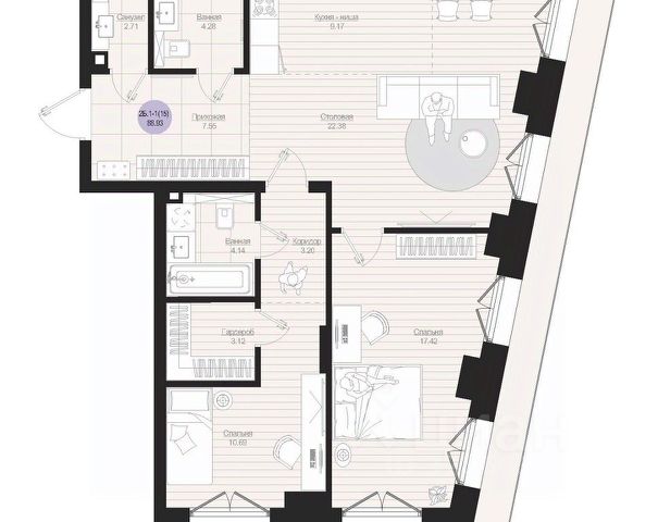Продается 2-комнатная квартира 53 площадью 56,17 кв.м на 5 этаже проекта "Дом на Исхаки" от "Ак Барс Дом". Купить квартиру можно в ипотеку со ставкой от 4,5%. "Дом на Исхаки" новый жилой комплекс бизнес-класса в историческом центре Казани. Для тех, кто хочет жить в сердце мегаполиса, и при этом сохранить атмосферу приватности. В доме всего 56 квартир. ЖК расположен недалеко от Кремля в окружении необходимой инфраструктуры: в пешей доступности бизнес-центры, Академический лицей им. Лобачевского и другие школы, федеральные университеты, детские сады, Большой драматический театр, ЦУМ, ТРК "Кольцо", спортивные и медицинские центры. Проект "Дом на Исхаки" это премиальный комфорт. Уютный двор с детской площадкой и возможностями для спокойного отдыха, подземный паркинг с современной системой охраны и удобным заездом по считыванию номеров. Эффектная входная группа впечатляет: художественная подсветка фасадов, панорамное остекление, лаунж-зоны с мягкими диванами, система антиобледенения при входе. Вместительная колясочная и гостевой санузел в холле. В проекте высокие потолки до 3 м и до 4,4 м на мансардном этаже, просторные видовые террасы. Увеличенные окна и стекла с нанонапылением повышают шумоизоляцию, делают жилое пространство светлее и теплее, помогают сократить расходы на отопление. Комфортная 2-комнатная квартира с просторной кухней, из которой открывается выход на балкон. Здесь по утрам за чашечкой чая или кофе вы сможете наслаждаться жизнью в центральной части Казани. Удачные пропорции 2 жилых комнат позволят воплотить любые дизайнерские задумки. В квартире 2 санузла и коридор с нишами под шкаф-купе. Видеонаблюдение по периметру дома, в лифтах, в подъезде и на парковке. Система IP-домофонии с функцией Face-ID. В квартиры установлены стильные вызывные панели со встроенной камерой. Через приложение вы можете наблюдать, что происходит перед дверью квартиры и удаленно открывать дверь в подъезде своим гостям. Мы сделали все, чтобы придать Вашей мечте форму дома. Дом там, где мы.