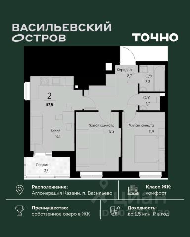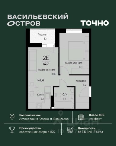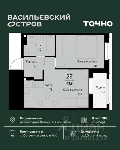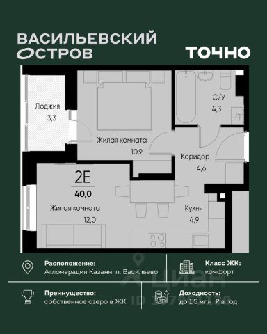 ЖК "Васильевский остров" — масштабный проект ТОЧНО в Казанской агломерации. Просторная территория 88 Га спроектирована для комфортной жизни: озеро с набережной и пляжем, каток, зелёные маршруты. В проекте комплекса — школа на 1 224 места, 2 детских сада на 680 мест, детская и взрослая поликлиники, фитнес-центр с бассейном, термальный комплекс, фермерский рынок, магазины, кафе и рестораны.