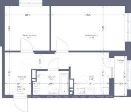 Просторная 2-комнатная квартира с большой кухней-гостиной площадью 24 кв. м. для уютных семейных посиделок или встреч с друзьями за большим столом. Кухонная зона спрятана в нише, что позволяет зонировать пространство.