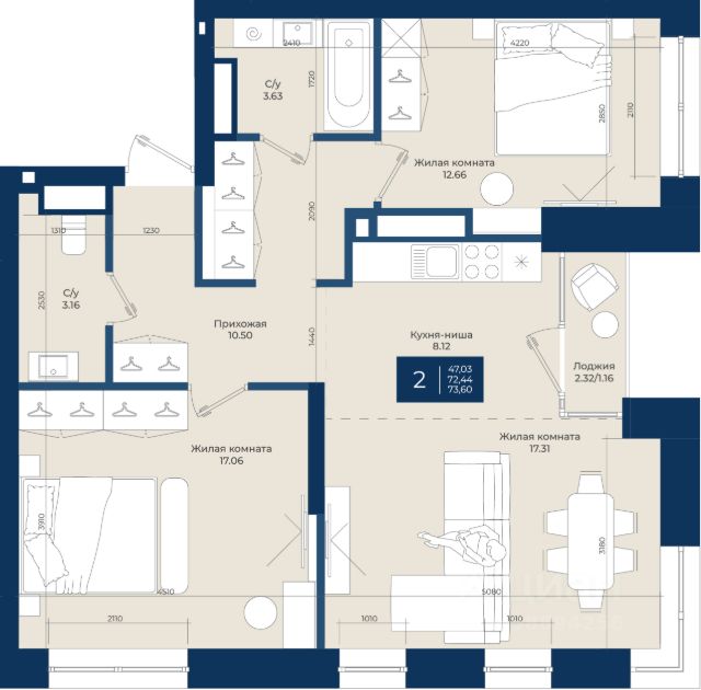 В доме представлен широкий выбор планировок: квартиры с просторными террасами, пентхаусы, мастер-спальнями с личными ванными и гардеробными, угловыми окнами и продуманной геометрией света. Также в проекте — форматы 3-, 4- и 5-комнатных квартир.