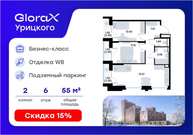 Продается 2-комн. квартира на 6-м этаже в квартале бизнес-класса GloraX Урицкого. Общая площадь лота составляет 46,09 кв. м, из которых 21,45 кв. м отведено под жилую и 12,07 кв. м под кухонную зону. Номер квартиры - 224 GloraX Урицкого это идеальное сочетание динамики мегаполиса и камерности района, где каждое утро начинается легко, а каждый вечер наполнен ощущением дома Преимущества квартиры: двухкомнатная квартира; остекленная лоджия; вид во двор. Преимущества, которые изменят вашу жизнь: • Собственная инфраструктура: Всё для комфорта и досуга, не выходя за территорию проекта • Безопасность 24/7: Закрытая территория, видеонаблюдение, система "Умный дом" • Безбарьерная среда: Забота о каждом жителе, независимо от возраста • Футуристичные лобби: Эстетика и комфорт с первых шагов в вашем доме. • Колясочные в каждой секции: Больше пространства в ваших квартирах • Квартиры в отделке White Box: Готовый холст для реализации дизайнерских идей. • Благоустройство в стиле лесопарка: эко-пространство, где природа становится частью повседневной жизни. GloraX Урицкого это проект бизнес-класса для тех, кто живёт в ритме большого города, но ждёт безмятежности у себя дома. Здесь всё важное происходит рядом с вами: работа, встречи, спортивные и культурные активности, прогулки, образование и обучение. Здесь вы ощутите, что вы наконец-то дома — в доме, которого давно ждали. Стоимость действительна при 100% оплате или стандартной ипотеке.