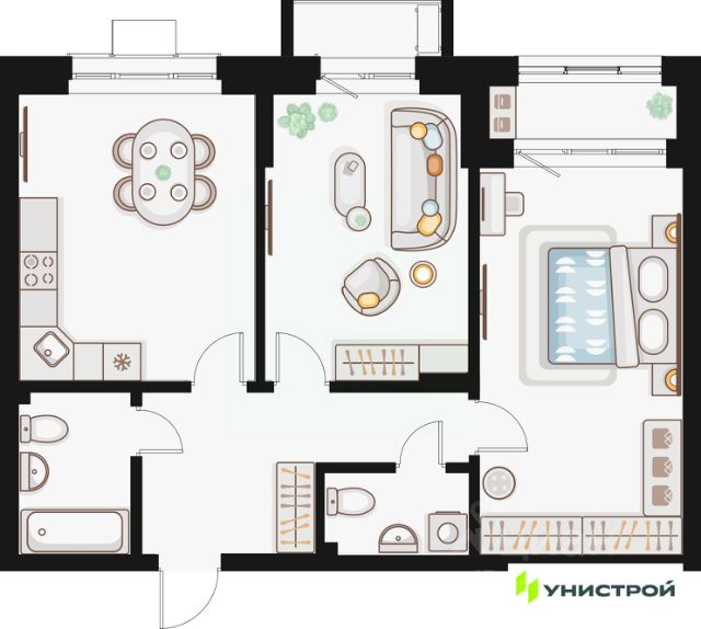 Q на Кулагина Жилой комплекс от компании "Унистрой" расположен в Приволжском районе Казани, на улице Кулагина, в активно застраиваемой и развивающейся части города. "Q на Кулагина" включает дома переменной высотности 9-20 этажей, фасады с подсветкой, дворы-парки с сенсорными садами, холлы и подземный паркинг с лифтом. Предлагаются квартиры с различными вариантами планировок. Жилой кластер Q это жизнь в перспективном районе города, при этом в тихом уютном месте у воды. Комплексный проект, где начинается новая история места. Локация Проект расположен в Приволжском районе на улице Кулагина. Рядом набережная озера Нижний Кабан, которая берёт начало от театра Камала, c пешеходными маршрутами, каскадом водных растений, велодорожками и лодочной станцией. Из объектов инфраструктуры несколько школ, детских садов, спортивный комплекс "Бустан", центр гребных видов спорта. В нескольких шагах благоустроенная набережная вдоль Монастырской протоки и озеро Средний Кабан у жилого комплекса "Аквамарин". На первых этажах домов откроются офисы, кофейни, спортивные студии, детские развивающие центры, клиники и многое другое. Архитектура Комплекс состоит из 3 домов квартальной застройки. Между собой дома объединяют прогулочные зоны. Объёмность архитектуре добавляет переменная высотность 9-20 этажей. Природные светлые и тёмные тона в отделке экстерьера проекта, общественных пространств создают уют и визуальный комфорт. Фасады из крупноформатных панелей с подсветкой формируют облик современной городской застройки. Пространства Дворы жилого комплекса это приватные зоны с игровыми площадками из природных материалов, спортивными зонами, местами для отдыха и работы. Есть прогулочные маршруты, беседки и релакс-парки. Интерьеры Дворы и входы в подъезды выполнены без пандусов и ступеней. Входные группы оформлены в современном стиле с природными оттенками. Холлы выполнены по авторскому дизайн-проекту и включают домофоны в тёплых зонах, бесшумные скоростные лифты, места ожидания, паркинг для колясок. Квартиры В "Q на Кулагина" предлагаются квартиры с террасами, евроварианты с просторными кухнями-гостиными, мастер-спальнями с ванными и гардеробными, тёплыми лоджиями и эркерами. На верхних этажах террасы позволяют любоваться видом на Волгу и Гребной канал. Отделка В квартирах выполняется предчистовая отделка с использованием качественных материалов: металлические двери, тепло- и шумоизоляция, энергоэффективные стеклопакеты, скрытая разводка коммуникаций и радиаторы с терморегуляцией. Персонификация В жилом комплексе устанавливаются двери с электронными замками, зайти можно классическим способом с ключами или по отпечатку пальца. В дома подается питьевая вода, прошедшая фильтрацию и ионизацию. Автоматизирован учет потребления ресурсов. Паркинг "Q на Кулагина" включает подземный паркинг. Территории дворов, входные группы, будут оборудованы видеонаблюдением и охраной. Предусмотрены многоуровневый паркинг, гостевые места и зарядные станции для электромобилей. Республика Та