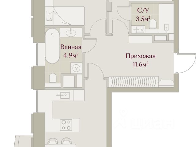 В коридоре, туалете, ванной и на балконе теплые полы, подоконники из искусственного мрамора,