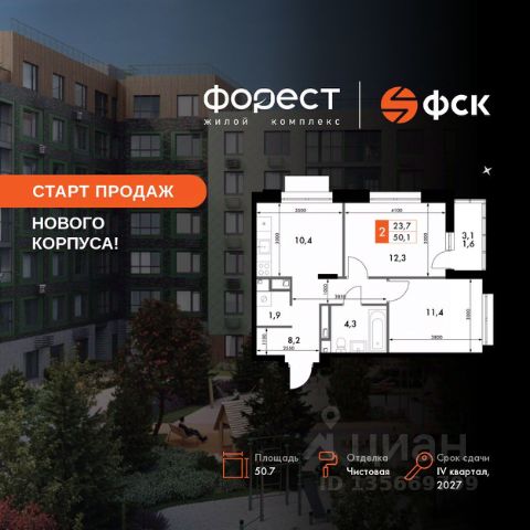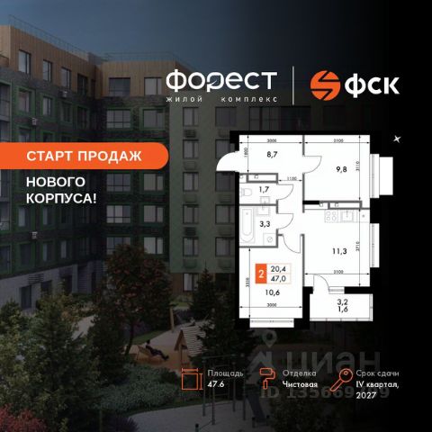 Прямая продажа от застройщика! Корпус 1.1 сдан! Жилой Комплекс комфорт-класса. Продаётся 2-к квартира номер 52 общей площадью 43.5 кв.м. на 6-м этаже 7 этажного здания. Предчистовая отделка. Цена с учётом скидки. Особенности квартиры: Квартира с предчистовой отделкой. Вам не придется заниматься черновыми и трудоёмкими работы, а чистовую отделку и дизайн - сделайте на свой вкус. Информация о комплексе: "Форест" - жилой комплекс комфорт-класса, созданный для тех, кто ищет гармонию с природой, не отказываясь от городского ритма. Расположенный в окружении леса и реки, он воплощает мечту о загородной жизни со всеми удобствами города. Здесь можно проживать самые тёплые моменты с близкими, дышать свежим хвойным воздухом, встречать утро на собственной террасе или проводить вечера с друзьями под открытым небом. Благоустроенная территория, прогулочные дорожки и зоны отдыха создают атмосферу уюта и гармонии. Поблизости - лес и Волга, куда можно выбраться на прогулку в любое время, не дожидаясь выходных. Благодаря вечнозелёным растениям и продуманному озеленению, дворы остаются зелёными круглый год. Транспортная доступность: - 4 мин. пушком до автобусной остановки - 5 мин. на машине до школы Внутренняя инфраструктура: Продуманное пространство для жизни, отдыха и развития. На территории комплекса работает собственный детский сад - современное и безопасное пространство, где дети всегда рядом с родителями. Во дворе установлены игровые комплексы для активных прогулок и развития малышей на свежем воздухе. Жителям доступны кафе и магазины, площадки для прогулок с питомцами, зоны для пикников и барбекю. Для любителей активного образа жизни предусмотрены велодорожки, воркаут-зоны и тропы для хайкинга, а в шаговой доступности находятся планетарий и глэмпинг. Просторный двор без машин и закрытая территория с системой контроля доступа обеспечивают высокий уровень безопасности и приватности. Здесь можно по-настоящему расслабиться и чувствовать себя дома - в окружении природы, комфорта и заботы о каждом дне.