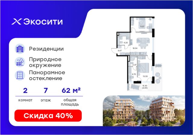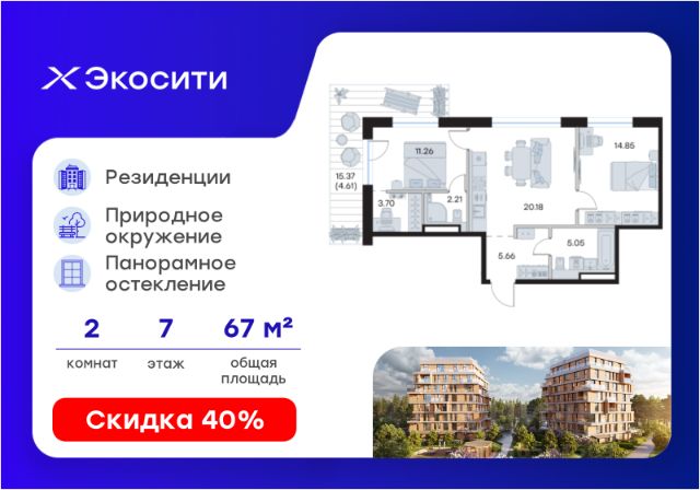 Продается 2-комн. квартира на 7-м этаже в строящемся проекте Экосити. Общая площадь лота составляет 67,27 кв. м, из которых 23,48 кв. м отведено под жилую и 23,32 кв. м под кухонную зону. Номер квартиры - 81 Преимущества резиденции в квартале "Резиденции": - перегородки межкомнатные перегородки в 1 кирпич, в С/У в 2 кирпича с заведением гидроизоляции на 20 см - потолки - без отделки - полы в помещениях: жилые комнаты, гардеробная, коридор, прихожая, кухня - шумоизоляция пола, стяжка -полы во влажных помещениях - гидроизоляция, стяжка -водоснабжение -ввод ХВС, ГВС, канализации в ближайший СУ/в квартиру - электрический щит - временный, при входе в квартиру - отопление - горизонтальная разводка в полу с установкой - входная дверь - металлическая входная дверь с декоративной накладкой - На территории Урбан-квартала предусмотрено строительство детского сада на 360 мест, школы на 1501 место, детский развивающий центр на 2000 мест. - Рядом с с кварталом Резиденции запланировано строительство детского сада на 360 мест, школы с детским развивающим центром на 1501 место - На первых этажах домов Урбан-квартала запроектированы коммерческие помещения - предусмотрены места для супермаркетов, бытовых услуг, кафе. - Собственный комьюнити-центр для жителей Урбан-квартала - Клуб Резидентов для жителей квартала Резиденции - бульвар "Река между камней" с плейхабом для детей, амфитеатром, спортивными зонами, аллеей достижений. Всем посетителям будет доступен иммерсивный маршрут и AR-игры. - Тайная тропа вдоль которой расположатся зоны тихого отдыха, йоги и медитаций - 2 смотровые площадки - Снейк-ран - Круговой спортивный маршрут - Специальные зоны для выгула собак - В Урбан-квартале предусмотрено строительство 2 многоэтажных паркингов на 300 и 360 машиномест. Всем жителям проекта доступен и привычный плоскостной паркинг вокруг территории проекта с возможностью в приложении дома получить информацию о наличии парковочных мест. - В квартале Резиденции предусмотрен подземный паркинг на 260 машиномест Экосити — это совершенство города в первозданной природе. Наполненный возможностями квартал, в котором вы не выбираете между городом или природой, семьей или работой, отдыхом или спортом, — вы берете всё сразу. Каждая семья, каким бы составом она ни жила, найдет для себя идеальное пространство. Планировочные решения разнообразны, также как и возможности отделки от черновой до полностью с ремонтом. Здесь запроектированы квартиры с просторной кухней-гостиной, чтобы семья могла комфортно проводить время вместе. Резиденции сдаются в черновой отделке, вы могли реализовать ваши самые смелые дизайнерские решения. Каждая резиденция это база, на которой можно выстроить свой личный стиль. Цена указана при 100% оплате или стандартной ипотеке. Узнайте подробности в Отделе продаж.