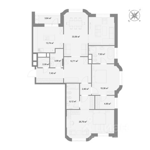 Квартира распашонка, окна выходят на две стороны!