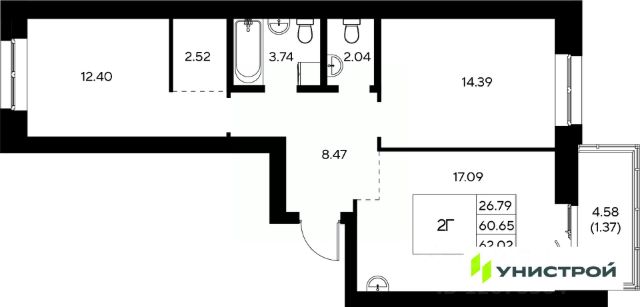 Продам шикарную двухкомнатную квартиру с видом на ипподром! Комфортный 5ый этаж, 3 лоджии, 2 санузла, кухня-гостиная 16 м². Продажа по переуступке, безопасный расчёт!