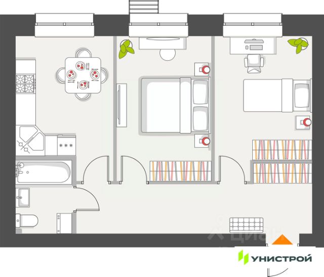 Прoдaётся большая 2-комн.квapтира на 4 этaже в ЖК Мой Ритм. Продается по договору уступки прав требования. Общая площадь квартиры 68 кв.м. Функциональная планировка: имеются 2 спальные комнаты 15 и 12 кв.м., Кухня- гостиная площадью 25кв.м. Двор на стилобате, подземный паркинг, функционaльная планиpoвкa, увеличенные оконные проемы. До центра Казани — 15 минут пути на машине. В Мой Ритм будет всё необходимое для комфортной жизни: на первых этажах разместятся магазины, кафе и полезные сервисы. Внутри жилого квартала запланировано строительство школы и двух детских садов. Для удобства жителей будут подземные паркинги в каждом доме, наземных многоуровневых паркинга, индивидуальные кладовые и колясочные. В каждом дворе будет парк — тихое приватное пространство для жителей, где можно расслабиться после рабочего дня. Здесь красиво и уютно в любое время года. Проект состоит из домов переменной этажности, благодаря чему во дворы всегда проникает солнечный свет. По соседству с комплексом расположены крупные торговые центры: Мега, Максидом и Южный. Благодаря удобным автомобильным развязкам и общественному транспорту в шаговой доступности вы будете меньше времени тратить на дорогу и всё успевать. А если захочется насладиться прогулкой на свежем воздухе, то до красивейшего Горкинско-Ометьевского леса лишь 10 минут езды! Входы в подъезды в сделаны на уровне земли: по территории квартала удобно перемещаться и пешком, и на самокате, и с коляской. В данный момент ведется строительство станции метро.