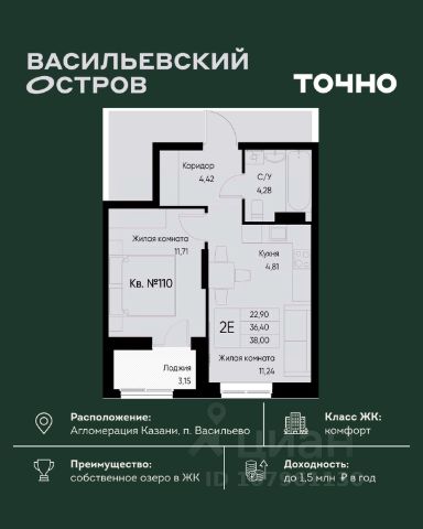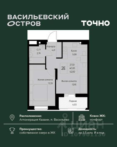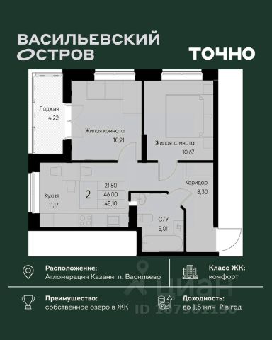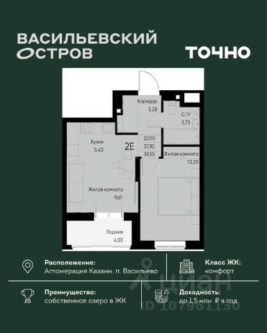 • ✓ В базе Циан 34 2-комнатных квартир на 7 этаже в муниципальном образовании Васильево республики Татарстан