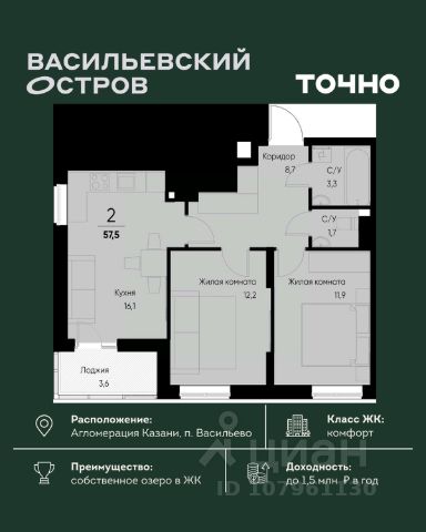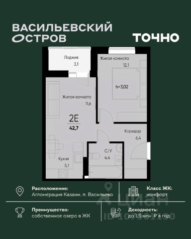 • ✓ В базе Циан 30 2-комнатных квартир на 7 этаже в муниципальном образовании Васильево республики Татарстан