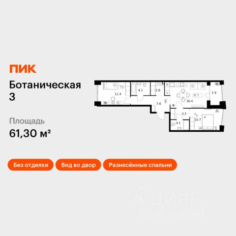 Продаётся 2-комн. квартира площадью 57,6 кв.м на 7 этаже 26 этажного дома (Корпус 3, Секция 3) проекта ПИК Сиберово. Светлый просторный подъезд на уровне земли, функциональная планировка, большие окна, предчистовая отделка. "Сиберово" - жилой квартал на улице Журналистов с парками в каждом дворе, школой и двумя детскими садами. До центра Казани - 15 минут пути на машине. Переменная высота домов от 7 до 26 этажей создаёт ощущение простора, а солнечному свету позволяет беспрепятственно проникать во дворы и квартиры. С верхних этажей откроется панорамный вид на реку Казанку, "Ак Барс Арену" и центр семьи "Казан". Жилой квартал отметили на форуме "Казаныш", где награждают лучшие архитектурные проекты Казани. В 2023 году проект оказался в двух номинациях: "Лучшее благоустройство территорий" и "Лучшая архитектурно-градостроительная подсветка". В "Сиберово" будет всё необходимое для комфортной жизни: на первых этажах разместятся магазины, кафе и полезные сервисы. Внутри жилого квартала запланировано строительство школы и двух детских садов. Для удобства жителей будут подземные паркинги в каждом доме, четыре наземных многоуровневых паркинга, индивидуальные кладовые и колясочные. В каждом дворе будет парк - тихое приватное пространство для жителей, где можно расслабиться после рабочего дня. Здесь красиво и уютно в любое время года. Через весь квартал протянется широкий пешеходный бульвар с велодорожками, велопарковками, зонами для отдыха, детскими и спортивными площадками. Входы в подъезды в "Сиберово" сделаны на уровне земли: по территории квартала удобно перемещаться и пешком, и на самокате, и с коляской. Первые этажи просторные и светлые: панорамное остекление пропускает много естественного света, а высота потолков доходит до пяти метров. Все квартиры сдаются в предчистовой отделке: с ровными белыми стенами, готовой гидроизоляцией, стяжкой полов, разводкой систем отопления, с окнами с надёжным пластиковым профилем. Вам останется только выбрать цвета и материалы для косметического ремонта, чтобы оформить квартиру на свой вкус. Вокруг "Сиберово" развитый район города: рядом детские сады, школы, колледж, поликлиники и торговые центры. До центра отсюда всего 15 минут на машине. Артикул 1025386 (Застройщик ООО "СЗ МТ ДЕВЕЛОПМЕНТ")