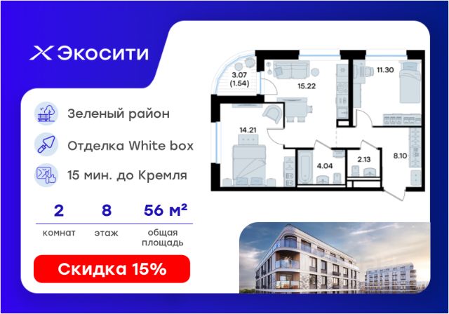 Продается 2-комн. квартира на 8-м этаже в строящемся проекте Экосити. Общая площадь лота составляет 47,40 кв. м, из которых 20,34 кв. м отведено под жилую и 12,99 кв. м под кухонную зону. Номер квартиры - 404 Преимущества квартиры в Урбан-квартале: • Квартира с полностью чистовой отделкой. В комнатах и коридоре: - натяжной потолок, - стены оклеены обоями под покраску, - полы: ламинат, плинтусы и напольная плитки - установлены межкомнатные двери и подоконники. В санузлах: - на стенах - керамогранитная плитка и/или окраска водостойкой краской - на полу - керамогранитная плитка; - натяжной потолок - сантехника: ванна и экран под ванну/душевой поддон, унитаз, раковины и смесители, монтаж водопровода и канализации - Предусмотрен расширенный пакет системы Умный Дом: бесключевой доступ в подъезд, видеодомофон с функцией Face ID, видеонаблюдение, автоматизированный сбор и передача показаний счётчиков; - На территории Урбан-квартала предусмотрено строительство детского сада на 360 мест, школы на 1501 место, детский развивающий центр на 2000 мест. - Рядом с с кварталом Резиденции запланировано строительство детского сада на 360 мест, школы с детским развивающим центром на 1501 место - На первых этажах домов Урбан-квартала запроектированы коммерческие помещения - предусмотрены места для супермаркетов, бытовых услуг, кафе. - Собственный комьюнити-центр для жителей Урбан-квартала - Клуб Резидентов для жителей квартала Резиденции - бульвар "Река между камней" с плейхабом для детей, амфитеатром, спортивными зонами, аллеей достижений. Всем посетителям будет доступен иммерсивный маршрут и AR-игры. - Тайная тропа вдоль которой расположатся зоны тихого отдыха, йоги и медитаций - 2 смотровые площадки - Снейк-ран - Круговой спортивный маршрут - Специальные зоны для выгула собак - В Урбан-квартале предусмотрено строительство 2 многоэтажных паркингов на 300 и 360 машиномест. Всем жителям проекта доступен и привычный плоскостной паркинг вокруг территории проекта с возможностью в приложении дома получить информацию о наличии парковочных мест. - В квартале Резиденции предусмотрен подземный паркинг на 260 машиномест Экосити — это совершенство города в первозданной природе. Наполненный возможностями квартал, в котором вы не выбираете между городом или природой, семьей или работой, отдыхом или спортом, — вы берете всё сразу. Каждая семья, каким бы составом она ни жила, найдет для себя идеальное пространство. Планировочные решения разнообразны, также как и возможности отделки от черновой до полностью с ремонтом. Здесь запроектированы квартиры с просторной кухней-гостиной, чтобы семья могла комфортно проводить время вместе. Квартиры сдаются с современной качественной отделкой, что позволяет после сдачи дома сразу начать жить, избежав долгих самостоятельных ремонтов. Цветовые решения и стиль отделки можно выбрать при покупке квартиры. Резиденции сдаются в черновой отделке, вы могли реализовать ваши самые смелые дизайнерские решения. Каждая резиденция это баз