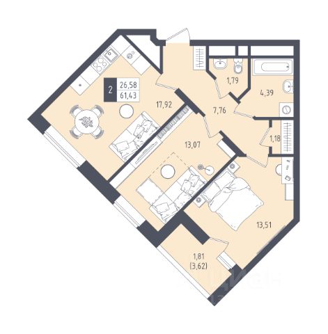 Эргонамичная планировка, которая позволяет грамотно расположить мебель и технику.