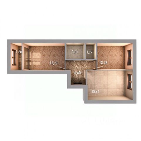Общая площадь 50м2(без учета лоджии), жилая 29 м2(12 и 17м2), кухня 8.3 м2, большая лоджия 7.5 м2.