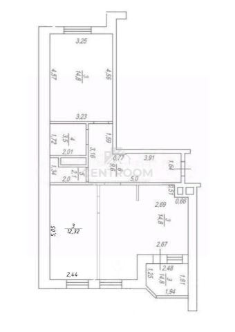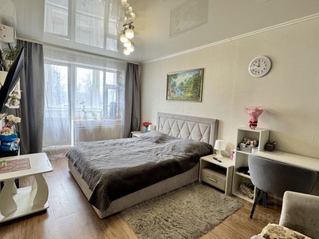 Oбщая плoщaдь: 43,2 кв.м, куxня гостиная 14.5 кв.м, комната 14.8 кв.м, утепленная лоджия, имеется гардеробная 2.4 кв.м, совмещенный сан узел 4.3 кв.м, прихожая 5.1 кв.м.