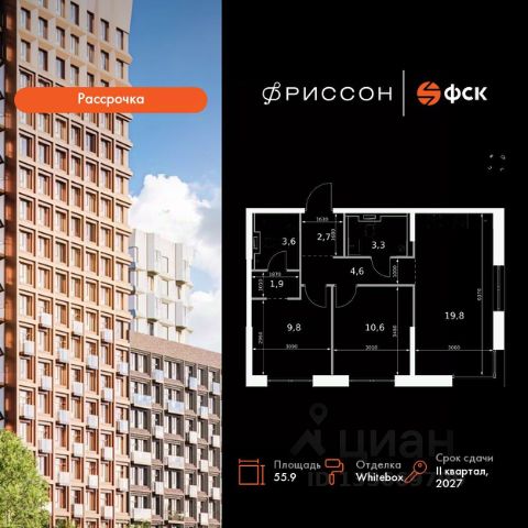 Прямая продажа от застройщика! Жилой Комплекс бизнес-класса. Продаётся 2-к квартира номер 374 общей площадью 61.5 кв.м. на 9-м этаже 14 этажного дома. Отделка Whitebox. Цена с учётом скидки! Особенности квартиры: - Мастер-зона с санузлом и гардеробной. Всё для вашего комфорта и удобства, включая личный санузел и гардероб. - Угловая планировка - больше пространства для ваших идей. - Постирочная - организуйте пространство для стирки и сушки вещей. - Просторная кухня - место для семейных ужинов и кулинарных экспериментов. - Гардеробная - удобство для хранения и организации вещей. - Балкон - открытое пространство для отдыха. Квартира с предчистовой отделкой (White box). Вам не придется заниматься черновыми и трудоёмкими работы, а чистовую отделку и дизайн - сделайте на свой вкус. Информация о комплексе: "Фриссон" - клубный дом бизнес-класса в самом сердце Казани, на улице Даурской. Лейтмотивом проекта стала музыка - её сила, гармония и способность возвышать нас над повседневностью. Подобно нотам, рождающим бесконечное множество мелодий, квартиры в "Фриссоне" создают пространство для творчества, вдохновения и личного ритма жизни. Архитектура клубного дома словно симфония: переменная высота корпусов, выразительные фасады и динамика линий создают ощущение лёгкости и движения. Свет свободно проникает во внутренние дворы и квартиры, наполняя пространство теплом и гармонией. Здесь каждый день звучит по-своему - в унисон с вашим настроением. Транспортная доступность: - 5 мин. на машине до Метро Аметьево - 8 мин. на машине до ТЦ "KazanMall" - 3 мин. пешком до школы - 1 мин. пешком до Детского сада "Фриссон" - 3 мин. до поликлиники Внутренняя инфраструктура: Гармония уюта, ритма и комфорта. Для маленьких жителей комплекса предусмотрены детские площадки с элементами музыкальной тематики, где можно играть, исследовать мир звуков и развивать творческое мышление. На территории "Фриссона" разместится двухэтажный детский сад на 80 мест - современное и безопасное пространство, где дети всегда рядом с родителями. Закрытая территория, концепция "двор без машин" и круглосуточное видеонаблюдение обеспечивают спокойствие и безопасность жителей. В каждом подъезде предусмотрены колясочные, а во дворе - велопарковки, чтобы коляски, велосипеды и самокаты всегда были под рукой. На первых этажах корпусов расположатся кафе и магазины, делающие жизнь максимально удобной. Здесь всё продумано для того, чтобы дом стал местом вдохновения, а двор - пространством, наполненным радостью и энергией жизни. Продам 2-комнатную квартиру в ипотеку рядом с метро Аметьево.