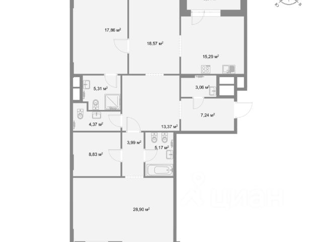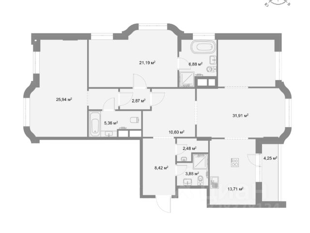 Предусмотрена свободная планировка. Окна выходят на юго-восток и северо-запад.