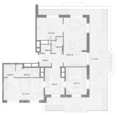 Общая площадь квартиры с учетом террасы и балкона 70,5 кв.м.
