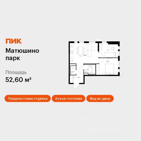 Общая площадь: 38,9 кв.м
