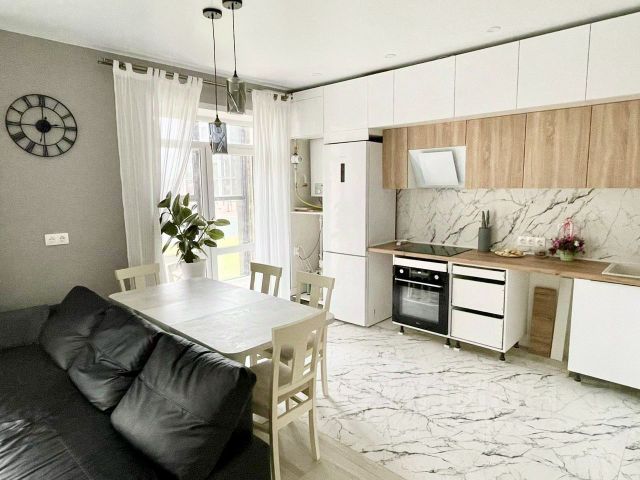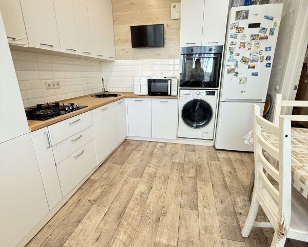 В продаже 2х комнатная квартира в ЖК АТМОСФЕРА от надежного застройщика УНИСТРОЙ. Удачная планировка: две изолированные комнаты, большая кухня гостиная, раздельный санузел, широкая прихожая с нишей под встроенный шкаф купе. — кухня гостиная 22.2 кв.м — комната 13 кв.м — комната 10.4 кв.м — с/у 2.1 кв.м — ванная 3.8 кв.м — прихожая 8.9 кв.м Общая площадь 60.4 кв.м Квартира с новым, дизайнерским ремонтом из качественных отделочных материалов. ДОПОЛНИТЕЛЬНО: Теплые полы в прихожей и ванной комнате. Система от протечек в ванной комнате и санузле. Накопительный бойлер Elесtrolux. Панорамное окно в спальной комнате. Готовые выводы под систему кондиционирования. В квартире остается мебель и техника по договоренности. Один взрослый собственник. —Современный жилой квартал с комфортной и безопасной средой. —Закрытые дворы без машин, видеонаблюдение по периметру, спокойствие и порядок. —Благоустроенные прогулочные зоны, игровые и спортивные площадки. —В пешей доступности 2 детских сада и новая школа. —Рядом остановка общественного транспорта. До центра Казани 25 минут. Удобная транспортная развязка в любую точку Казани.