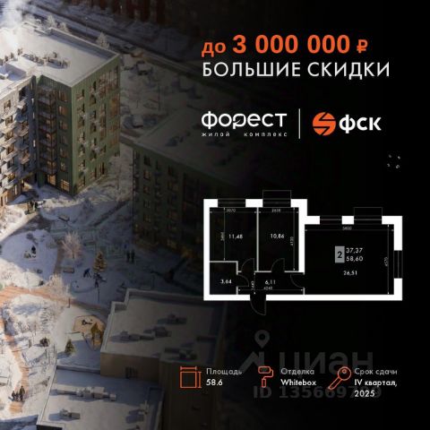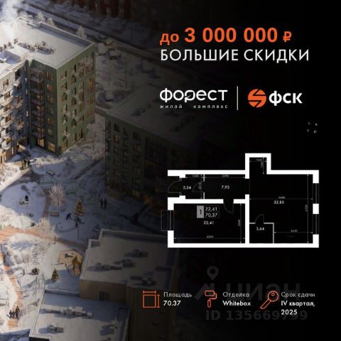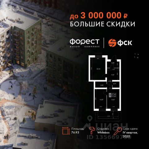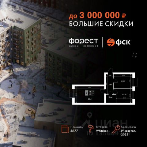 Прямая продажа от застройщика! Жилой Комплекс комфорт-класса. Продаётся 2-к квартира номер 10 общей площадью 45.8 кв.м. на 2-м этаже 7 этажного здания. Отделка Whitebox. Цена с учётом скидки. Особенности квартиры: Квартира с предчистовой отделкой (White box). Вам не придется заниматься черновыми и трудоёмкими работы, а чистовую отделку и дизайн - сделайте на свой вкус. Информация о комплексе: "Форест" - жилой комплекс комфорт-класса, созданный для тех, кто ищет гармонию с природой, не отказываясь от городского ритма. Расположенный в окружении леса и реки, он воплощает мечту о загородной жизни со всеми удобствами города. Здесь можно проживать самые тёплые моменты с близкими, дышать свежим хвойным воздухом, встречать утро на собственной террасе или проводить вечера с друзьями под открытым небом. Благоустроенная территория, прогулочные дорожки и зоны отдыха создают атмосферу уюта и гармонии. Поблизости - лес и Волга, куда можно выбраться на прогулку в любое время, не дожидаясь выходных. Благодаря вечнозелёным растениям и продуманному озеленению, дворы остаются зелёными круглый год. Транспортная доступность: - 4 мин. пушком до автобусной остановки - 5 мин. на машине до школы Внутренняя инфраструктура: Продуманное пространство для жизни, отдыха и развития. На территории комплекса работает собственный детский сад - современное и безопасное пространство, где дети всегда рядом с родителями. Во дворе установлены игровые комплексы для активных прогулок и развития малышей на свежем воздухе. Жителям доступны кафе и магазины, собственный SPA-центр, площадки для прогулок с питомцами, зоны для пикников и барбекю. Для любителей активного образа жизни предусмотрены велодорожки, воркаут-зоны и тропы для хайкинга, а в шаговой доступности находятся планетарий и глэмпинг. Просторный двор без машин и закрытая территория с системой контроля доступа обеспечивают высокий уровень безопасности и приватности. Здесь можно по-настоящему расслабиться и чувствовать себя дома - в окружении природы, комфорта и заботы о каждом дне.
