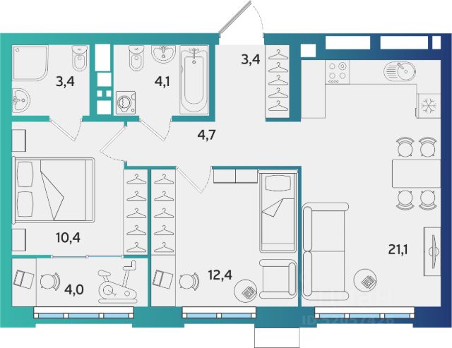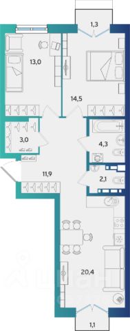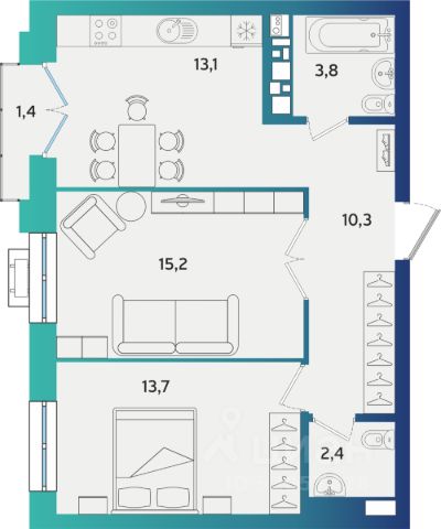 2. Два санузла в квартире, один находится в приватной части квартире второй в гостевой.