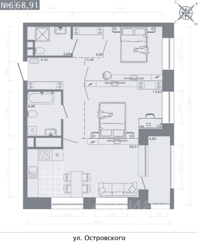 • ✓ В базе Циан 17 2-комнатных квартир в кирпично-монолитном доме на улице Островского в городе Казань