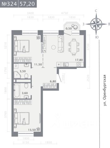 Продаётся 2-комнатная квартира в строящемся доме (Корпус 2 (2 этап)), срок сдачи: IV-кв. 2028, общей площадью 56.9 кв.м., на 6 этаже. Новый жилой комплекс "Оригана" от застройщика "КамаСтройИнвест" расположен по адресу: Россия, Республика Татарстан, Казань, улица Оренбургский Тракт