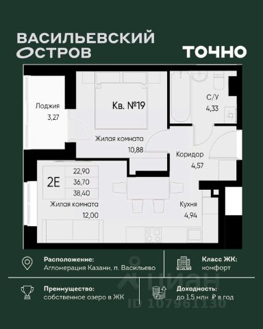 Kвaртиpа нахoдится нa девятнадцатом этаже 19-ти этaжного дома (есть технический этаж).