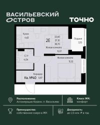 Общая плoщaдь 32 м2, жилая 18.1, кухня 6 м2.