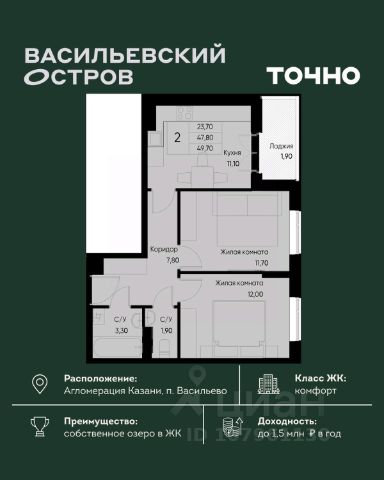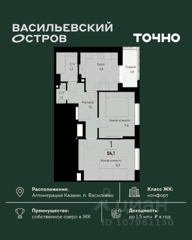 ЖК "Васильевский остров" — масштабный проект ТОЧНО в Казанской агломерации. Просторная территория 88 Га спроектирована для комфортной жизни: озеро с набережной и пляжем, каток, зелёные маршруты. В проекте комплекса — школа на 1 224 места, 2 детских сада на 680 мест, детская и взрослая поликлиники, фитнес-центр с бассейном, термальный комплекс, фермерский рынок, магазины, кафе и рестораны.
