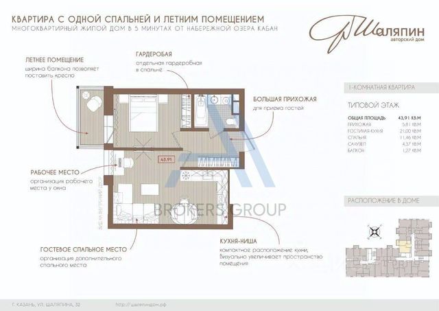 Арт. 116196068 Продается 2-х комнатная квартира в авторском доме премиум класса ЖК Шаляпин в самом центре города! Дом сдан! Квартира с ремонтом! Заезжай и живи! Авторский дом расположен на ул. Шаляпина среди тихих и уютных переулков, атмосферных исторических зданий и современных объектов инфраструктуры. Премиальная локация в центре города подарит вам дни, наполненные спокойствием, впечатлениями и комфортом. Здание из голландского кирпича в стиле "изысканного минимализма" Панорамные окна и открытые террасы. Закрытый внутренний двор с ландшафтным озеленением Двор без машин Вокрауты и детские зоны на 2-уровневой площадке KIDS STATION Великолепные входные группы и лаундж зоны О квартире: Общая площадь 43.1 м² Квартира расположена на 6 этаже. Эргономичная планировка: Кухонная зона совмещена с гостинной, компактная спальня с выходом на балкон. Санузел совмещенный. Стильный дизайнерский ремонт! Квартира полностью оборудована для жизни. Есть вся бытовая техника и мебель, текстиль , посуда и предметы декора! В шаговой доступности: Крупный торговый центр KazanMall Детские сады и школы, парки, скверы и бульвары для пеших прогулок. До станции метро "Суконная слобода" — 13 минут ходьбы. Для детей в минуте ходьбы расположен Образовательный центр Лобачевский Возможен торг! Звоните ! С Удовольствием ответим на все интересующие Вас вопросы устроим оперативный показ в любое удобное для Вас время !