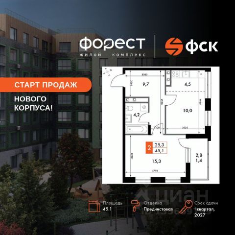 Прямая продажа от застройщика! Корпус 1.1 сдан! Жилой Комплекс комфорт-класса. Продаётся 2-к квартира номер 55 общей площадью 45.1 кв.м. на 7-м этаже 7 этажного здания. Предчистовая отделка. Цена с учётом скидки. Особенности квартиры: Квартира с предчистовой отделкой. Вам не придется заниматься черновыми и трудоёмкими работы, а чистовую отделку и дизайн - сделайте на свой вкус. Информация о комплексе: "Форест" - жилой комплекс комфорт-класса, созданный для тех, кто ищет гармонию с природой, не отказываясь от городского ритма. Расположенный в окружении леса и реки, он воплощает мечту о загородной жизни со всеми удобствами города. Здесь можно проживать самые тёплые моменты с близкими, дышать свежим хвойным воздухом, встречать утро на собственной террасе или проводить вечера с друзьями под открытым небом. Благоустроенная территория, прогулочные дорожки и зоны отдыха создают атмосферу уюта и гармонии. Поблизости - лес и Волга, куда можно выбраться на прогулку в любое время, не дожидаясь выходных. Благодаря вечнозелёным растениям и продуманному озеленению, дворы остаются зелёными круглый год. Транспортная доступность: - 4 мин. пушком до автобусной остановки - 5 мин. на машине до школы Внутренняя инфраструктура: Продуманное пространство для жизни, отдыха и развития. На территории комплекса работает собственный детский сад - современное и безопасное пространство, где дети всегда рядом с родителями. Во дворе установлены игровые комплексы для активных прогулок и развития малышей на свежем воздухе. Жителям доступны кафе и магазины, площадки для прогулок с питомцами, зоны для пикников и барбекю. Для любителей активного образа жизни предусмотрены велодорожки, воркаут-зоны и тропы для хайкинга, а в шаговой доступности находятся планетарий и глэмпинг. Просторный двор без машин и закрытая территория с системой контроля доступа обеспечивают высокий уровень безопасности и приватности. Здесь можно по-настоящему расслабиться и чувствовать себя дома - в окружении природы, комфорта и заботы о каждом дне.
