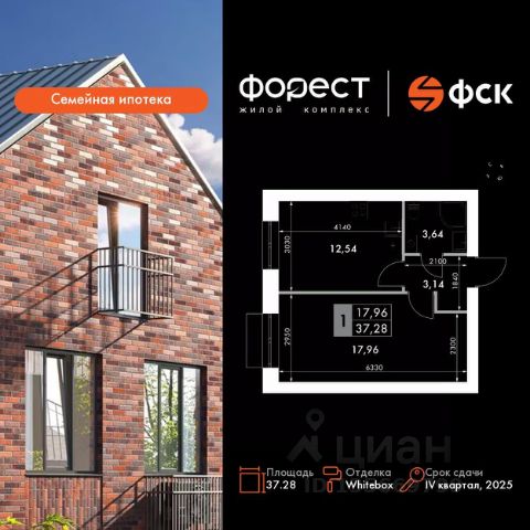 Продаётся 1-к квартира номер 74 общей площадью 37.28 кв.м. на 3-м этаже 4 этажного здания. Отделка Whitebox. Цена с учётом скидки.