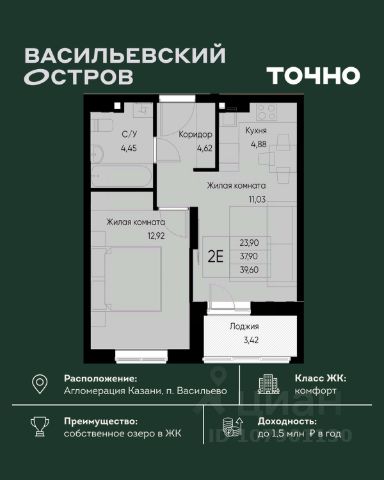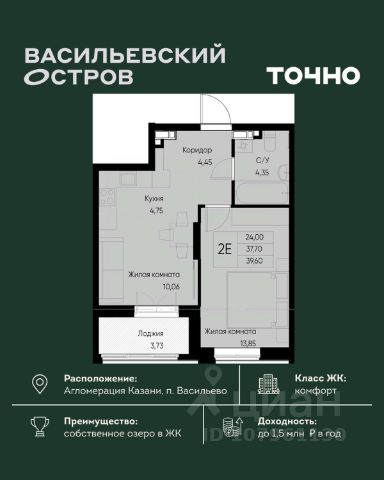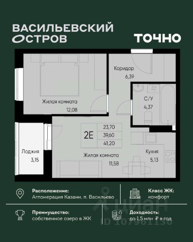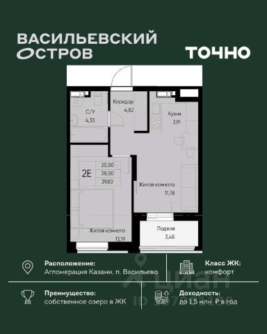 ЖК "Васильевский остров" — масштабный проект ТОЧНО в Казанской агломерации. Просторная территория 88 Га спроектирована для комфортной жизни: озеро с набережной и пляжем, каток, зелёные маршруты. В проекте комплекса — школа на 1 224 места, 2 детских сада на 680 мест, детская и взрослая поликлиники, фитнес-центр с бассейном, термальный комплекс, фермерский рынок, магазины, кафе и рестораны.