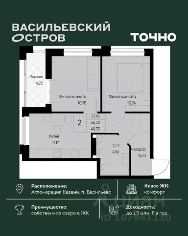• ✓ В базе Циан 16 2-комнатных квартир на последнем этаже в поселке городского типа Васильево республики Татарстан