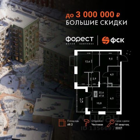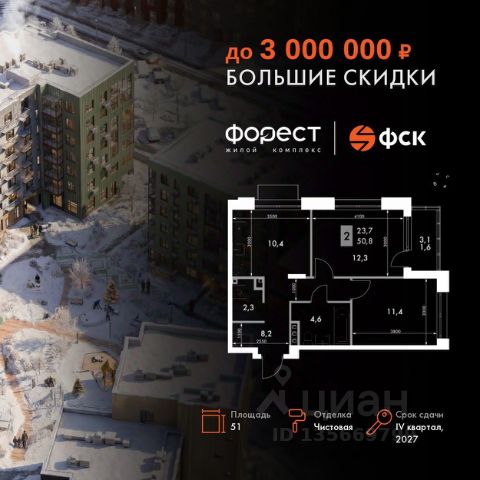 Прямая продажа от застройщика! Жилой Комплекс комфорт-класса. Продаётся 2-к квартира номер 10 общей площадью 45.8 кв.м. на 2-м этаже 7 этажного здания. Отделка Whitebox. Цена с учётом скидки. Особенности квартиры: Квартира с предчистовой отделкой (White box). Вам не придется заниматься черновыми и трудоёмкими работы, а чистовую отделку и дизайн - сделайте на свой вкус. Информация о комплексе: "Форест" - жилой комплекс комфорт-класса, созданный для тех, кто ищет гармонию с природой, не отказываясь от городского ритма. Расположенный в окружении леса и реки, он воплощает мечту о загородной жизни со всеми удобствами города. Здесь можно проживать самые тёплые моменты с близкими, дышать свежим хвойным воздухом, встречать утро на собственной террасе или проводить вечера с друзьями под открытым небом. Благоустроенная территория, прогулочные дорожки и зоны отдыха создают атмосферу уюта и гармонии. Поблизости - лес и Волга, куда можно выбраться на прогулку в любое время, не дожидаясь выходных. Благодаря вечнозелёным растениям и продуманному озеленению, дворы остаются зелёными круглый год. Транспортная доступность: - 4 мин. пушком до автобусной остановки - 5 мин. на машине до школы Внутренняя инфраструктура: Продуманное пространство для жизни, отдыха и развития. На территории комплекса работает собственный детский сад - современное и безопасное пространство, где дети всегда рядом с родителями. Во дворе установлены игровые комплексы для активных прогулок и развития малышей на свежем воздухе. Жителям доступны кафе и магазины, собственный SPA-центр, площадки для прогулок с питомцами, зоны для пикников и барбекю. Для любителей активного образа жизни предусмотрены велодорожки, воркаут-зоны и тропы для хайкинга, а в шаговой доступности находятся планетарий и глэмпинг. Просторный двор без машин и закрытая территория с системой контроля доступа обеспечивают высокий уровень безопасности и приватности. Здесь можно по-настоящему расслабиться и чувствовать себя дома - в окружении природы, комфорта и заботы о каждом дне.