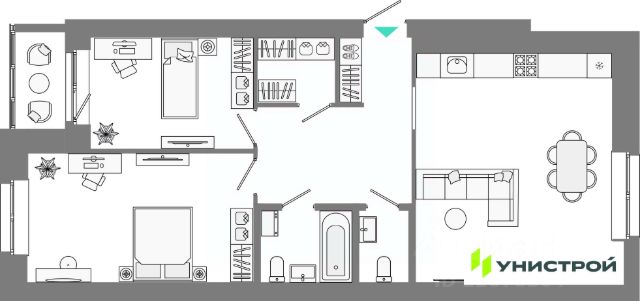 Уникум на Проспекте Победы "Уникум на Проспекте Победы" — проект от компании "Унистрой" в Казани. Жилой дом состоит из двух секций переменной высотности 7-25 этажей и гармонично вписывается в городское пространство. Жилой проект задает тренд на инклюзивную среду. Ту, в которой есть возможности для активной жизни и отдыха в пределах "Уникума". Проект отвечает ключевым запросам современного жителя большого города. Комфорт. Эстетика. И всё необходимое для успешной жизни рядом. "Уникум" — это лёгкая архитектура, стильное благоустройство и комфортное пространство для вашей жизни и отдыха. Развитый район "Уникум на Проспекте Победы" расположен в Советском районе Казани. Аэропорт находится в 25 минутах езды, ТЦ "Мега" и "Южный" в 10 минутах ходьбы, а остановка "Закиева" в двух минутах. В шаговой доступности фитнес-клубы, салоны красоты, медицинские центры и поликлиника. Для семей с детьми детский сад в доме, школы 156, 144, 167, 187 и 171 поблизости. Функциональность и эстетика "Уникум на Проспекте Победы" гармонично вписывается в городской ландшафт. Фасад в бежевых тонах с декоративным кирпичом соответствует современным требованиям к эстетике. На первых этажах коммерческие помещения для магазинов, кофеен и офисов, выполненные в едином стиле. Просторные холлы с высотой потолков 4,2 метра, подсветкой, современным дизайном и комфортной мебелью создают уютную атмосферу. Предусмотрены бесшумные скоростные лифты и колясочные с зарядками для электросамокатов. Входные группы из стекла, домофоны в теплом тамбуре, система грязезащиты и навигация обеспечивают удобство и безопасность. Френдли-среда и урбанистические тренды двора Двор "Уникума на Проспекте Победы" это френдли-среда, урбанистические тренды и баланс между отдыхом и работой. Жилой комплекс предлагает многообразие общественных пространств, а также фитнес-площадку, воркаут-зону, детские площадки для разных возрастов. Велопарковки у каждого подъезда, подземный паркинг и открытые машиноместа. Уникальные планировочные решения Жилой дом предлагает большое разнообразие планировок: студии, 1-комнатные, 2-комнатные (в том числе с европланировкой), просторные 3-комнатные. Квартиры с мастер-спальнями, гардеробными, видовые, с панорамными и угловыми окнами. Увеличенные оконные проёмы для создания светлого пространства. Лёгкое решение бытовых вопросов В "Уникуме на Проспекте Победы" обеспечивается подача чистой воды в каждую квартиру. Автоматическая передача данных учета воды, электричества и тепла в сервисную компанию через мобильное приложение. Электронные замки на входных дверях с дистанционным управлением. Паркинг "Уникум на Проспекте Победы" включает подземный паркинг со спуском на лифте. В нём 222 места для ваших автомобилей, 16 семейных и еще гостевые места. Паркинг, как и внутренний двор, охраняется и оборудован видеонаблюдением. Республика Татарстан, Казань, Проспект Победы , 001 кв.6 Продается 2-комнатная квартира от застройщика рядом с метро Проспект Победы.
