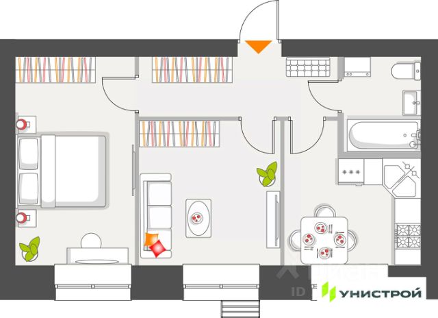 Уникум на Проспекте Победы "Уникум на Проспекте Победы" — проект от компании "Унистрой" в Казани. Жилой дом состоит из двух секций переменной высотности 7-25 этажей и гармонично вписывается в городское пространство. Жилой проект задает тренд на инклюзивную среду. Ту, в которой есть возможности для активной жизни и отдыха в пределах "Уникума". Проект отвечает ключевым запросам современного жителя большого города. Комфорт. Эстетика. И всё необходимое для успешной жизни рядом. "Уникум" — это лёгкая архитектура, стильное благоустройство и комфортное пространство для вашей жизни и отдыха. Развитый район "Уникум на Проспекте Победы" расположен в Советском районе Казани. Аэропорт находится в 25 минутах езды, ТЦ "Мега" и "Южный" в 10 минутах ходьбы, а остановка "Закиева" в двух минутах. В шаговой доступности фитнес-клубы, салоны красоты, медицинские центры и поликлиника. Для семей с детьми детский сад в доме, школы 156, 144, 167, 187 и 171 поблизости. Функциональность и эстетика "Уникум на Проспекте Победы" гармонично вписывается в городской ландшафт. Фасад в бежевых тонах с декоративным кирпичом соответствует современным требованиям к эстетике. На первых этажах коммерческие помещения для магазинов, кофеен и офисов, выполненные в едином стиле. Просторные холлы с высотой потолков 4,2 метра, подсветкой, современным дизайном и комфортной мебелью создают уютную атмосферу. Предусмотрены бесшумные скоростные лифты и колясочные с зарядками для электросамокатов. Входные группы из стекла, домофоны в теплом тамбуре, система грязезащиты и навигация обеспечивают удобство и безопасность. Френдли-среда и урбанистические тренды двора Двор "Уникума на Проспекте Победы" это френдли-среда, урбанистические тренды и баланс между отдыхом и работой. Жилой комплекс предлагает многообразие общественных пространств, а также фитнес-площадку, воркаут-зону, детские площадки для разных возрастов. Велопарковки у каждого подъезда, подземный паркинг и открытые машиноместа. Уникальные планировочные решения Жилой дом предлагает большое разнообразие планировок: студии, 1-комнатные, 2-комнатные (в том числе с европланировкой), просторные 3-комнатные. Квартиры с мастер-спальнями, гардеробными, видовые, с панорамными и угловыми окнами. Увеличенные оконные проёмы для создания светлого пространства. Лёгкое решение бытовых вопросов В "Уникуме на Проспекте Победы" обеспечивается подача чистой воды в каждую квартиру. Автоматическая передача данных учета воды, электричества и тепла в сервисную компанию через мобильное приложение. Электронные замки на входных дверях с дистанционным управлением. Паркинг "Уникум на Проспекте Победы" включает подземный паркинг со спуском на лифте. В нём 222 места для ваших автомобилей, 16 семейных и еще гостевые места. Паркинг, как и внутренний двор, охраняется и оборудован видеонаблюдением. Республика Татарстан, Казань, Проспект Победы , 001 кв.6