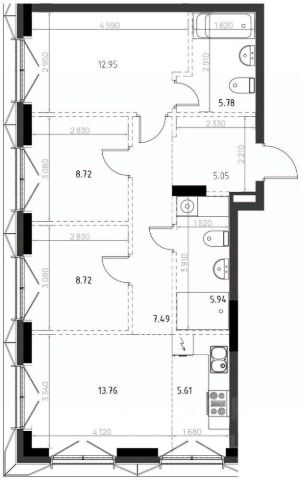 В квартире 2 санузла и 2 отдельные комнаты для личного пространства всех членов семьи, функциональная прихожая с вместительными нишами под гардеробную.